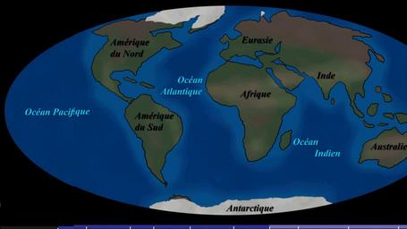 Keywords: Continental Drift (740 million-to-Today).gif en Hand-drawn images inspired from various low-resolution images of continental drifts Positions were extrapolated by doing 'in-between' images of existing frames trading accuracy for fluidity of movement This is not an accurate scientific representation Please do not start excavating archeological sites based on these maps I just needed to show the general trend of continental drift the formation of Pangea the supercontinent and its break up until continents reach today's positions The first frame starts at 740 million years the last frame is today Each frame moves forward in time approx 10-to-20 million years Feel free to use this animation or any part of it in any way your heart desires Cheers -- Images dessinées à la main inspirées de plusieurs images en basse-résolution de déplacements des continents Les positions 'entre-deux' ont été extrapolées à partir d'images existantes - ce que j'ai perdu en précision j'ai gagné en fluidité des déplacements Ceci n'est pas une représentation scientifique exacte S V P ne vous basez pas sur ces cartes pour effectuer des fouilles archéologiques J'avais simplement besoin de montrer la tendance générale des continents lors de leurs déplacements la formation du supercontinent Pangée et son morcellement jusqu'aux positions actuelles des continents La première image se situe autour de 740 millions d'années la dernière image montre les positions actuelles Chaque nouvelle image avance dans le temps d'environ 10-à-20 millions d'années Vous pouvez utiliser cette animation ou n'importe quelle portion comme bon vous semble Au plaisir 2016-03-04 own SebM123 other versions cc-zero Maps of continents Continental drift Paleozoic Animated GIF files