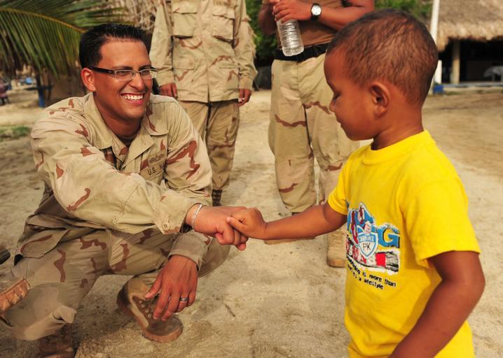 | Keywords: Continuing Promise 2010 DVIDS308114.jpg  en Seaman Fidel Lopez logistics specialist from Miami assigned to Beach Master Unit 1 greets a Colombian boy during Continuing Promise 2010 BMU-1 is embarked aboard the amphibious assault ship USS Iwo Jima which is off the coast of Colombia conducting the Continuing Promise humanitarian civic assistance mission to provide medical dental veterinary and engineering assistance to eight nations 2010-08-08 Petty Officer 3rd Class Jonathen Davis https //www dvidshub net/image/308114 100808-N-+++++-360 2010-08-09 20 41 COVENAS CO PD-USGov-Military-Navy Continuing Promise 2010 Images from US Navy location Iwo Jima Japan Images from DoD uploaded by Fæ |