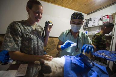 | Keywords: Continuing Promise 2015 150715-N-XQ474-020.jpg  en 150715-N-XQ474-020 BUENAVENTURA Colombia - Army Capt Emily Corbin left a native of Boulder Junction Wis and a veterinarian assigned to Public Health Command District Fort Meade Md and a local Colombian veterinarian perform a procedure on a cat at a veterinarian site established at Eufermeria Canina del Grupo Antiexplosnos Urbano in support of Continuing Promise 2015 Continuing Promise is a U S Southern Command-sponsored and U S Naval Forces Southern Command/U S 4th Fleet-conducted deployment to conduct civil-military operations including humanitarian-civil assistance subject matter expert exchanges medical dental veterinary and engineering support and disaster response to partner nations and to show U S support and commitment to Central and South America and the Caribbean 2015-07-15 July 15 2015 https //www dvidshub net/image/2072306 150715-N-XQ474-020 2015-07-17 08 08 BUENAVENTURA CO PD-USGov-Military-Navy Fort Meade Images from DoD uploaded by Fæ Continuing Promise 2015 Photographs by Andrew Schneider |