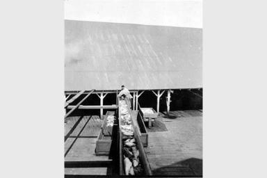 Keywords: Conveyor belt carrying salmon at the Alaska Packers Association cannery at Clark's Point, Nushagak Bay, Alaska, July 1918 (COBB 119).jpeg check categories 29 December 2015 2 Photograph Creator John Nathan Cobb On verso of image Elevator carrying dressed fish from fish house to N C cannery Clark's Point Alaska July 1918 Subjects LCTGM Canneries--Alaska--Clark's Point; Cannery workers--Alaska--Clark's Point Subjects LCSH Alaska Packers Association; Salmon canning industry--Alaska--Clark's Point; Conveyor belts--Alaska--Clark's Point depicted place United States--Alaska--Clark's Point 1918 silver gelatin b w Institution University of Washington UWASH-JNCobb-source accession number 119 PD-old-auto-1923 1930 Information field Order Number COB049 Images from the John N Cobb Photograph Collection to check Canneries in Alaska Conveyor belts |