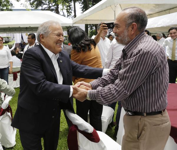 Keywords: people outdoor Presidente Salvador Sánchez Cerén saluda a periodista Francisco Valencia. Presidente Salvador Sánchez Cerén saluda a periodista Francisco Valencia.
