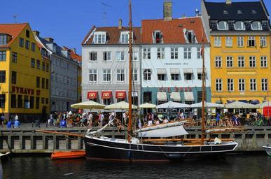 Keywords: copenhagen nyhavn tourist attraction denmark port ship buildings summer sol blue sky house red yellow beautiful boat channel architecture artistic christian 5 sailor værtshuse cafes restaurants bars h c andersen tinder box little claus and big claus princess and the pea beer