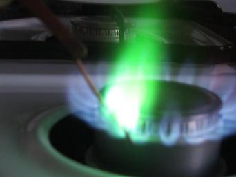 Keywords: Copper flame test.JPG en Copper wire in a flame test The copper wire was previously dipped in HCl The oxygen oxidizes the copper to copper oxide which reacts with the hydrogen chloride fumes to make copper chloride which gives the bright flame test color own Chemicalinterest Copper Flame test Gas flames |