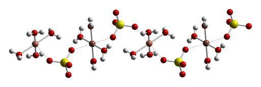 | Keywords: Copper(II)-sulfate-pentahydrate-CuOSOCu-chain-from-xtal-2007-CM-3D-balls.png Ball-and-stick diagram of part of the crystal structure of copper II sulfate pentahydrate CuSO<sub>4</sub>·5H<sub>2</sub>O Colour code Copper Cu orange-pink Sulfur S yellow Oxygen O red Hydrogen H white Crystal structure from http //dx doi org/10 2138/am 2007 2229 American Mineralogist 2007 92 532 “545 Image generated in http //www crystalmaker com/ CrystalMaker 8 3 Own 2010-07-26 Ben Mills Benjah-bmm27 Images by Ben Mills Ball-and-stick models Crystal structures of copper II sulfate pentahydrate |