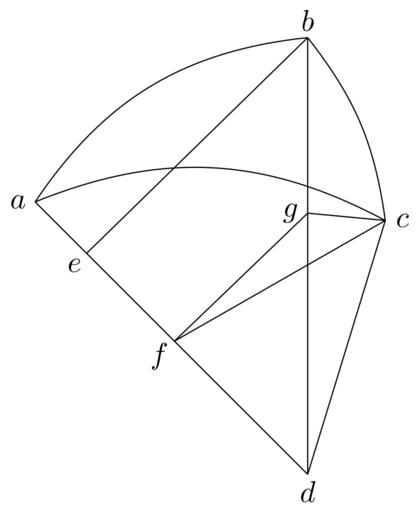 | Keywords: Coppernicus 026.svg de à ber die Kreisbewegungen der Weltkörper 26 File Kreisbewegungen-Coppernicus-0 djvu p 54 1879 w Nicolaus Copernicus File Coppernicus_026 png PD-old-100 De revolutionibus drawings LaTeX Source Code <syntaxhighlight lang latex > complile with »pdflatex« \documentclasstikz convert pdf2svg standalone \begin document \begin tikzpicture \coordinate A at 135 4 5 ; \coordinate B at 90 5 1 ; \coordinate C at 73 3 1 ; \coordinate D at 0 0 ; \coordinate E at 135 3 65 ; \coordinate F at 135 2 2 ; \coordinate G at 90 3 05 ; \draw D -- A ; \draw D -- C ; \draw D -- B ; \draw G -- C ; \draw F -- C ; \draw F -- G ; \draw E -- B ; \draw A tobend left 25 B ; \draw A tobend left 25 C ; \draw B tobend left 15 C ; \draw A + 180 0 2 node a ; \draw B + 90 0 2 node b ; \draw C + 0 0 2 node c ; \draw D + -90 0 2 node d ; \draw E + -135 0 2 node e ; \draw F + -135 0 25 node f ; \draw G + 180 0 2 node g ; \end tikzpicture \end document </syntaxhighlight> |