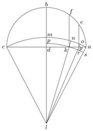 | Keywords: Coppernicus 043.svg de à ber die Kreisbewegungen der Weltkörper 43 File Kreisbewegungen-Coppernicus-0 djvu p 139 1879 w Nicolaus Copernicus File Coppernicus_043 png PD-old-100 De revolutionibus drawings LaTeX Source Code <syntaxhighlight lang latex > complile with »pdflatex« \documentclasstikz convert pdf2svg standalone \usepackage tkz-euclide \usetkzobj all \begin document \begin tikzpicture \tkzSetUpLineline width 0 4pt \pgfmathsetmacro \DA 2 33 ; \pgfmathsetmacro \ADE 35 ; \tkzDefPoint 0 \DA A \tkzDefPoint 90 \DA B \tkzDefPoint 180 \DA C \tkzDefPoint 0 0 D \tkzDefPoint \ADE \DA E \tkzDefPoint 90-\ADE \DA F \tkzDefPoint 0 -1 93 \DA L \coordinate G at E -D ; \coordinate K at F -D ; \begin pgfinterruptboundingbox \tkzInterLC L B L A \tkzGetPoints M2 M \tkzInterLC L K L A \tkzGetPoints N2 N \tkzInterLC L G L A \tkzGetPoints O2 O \tkzInterLC L B L K \tkzGetPoints P2 P \tkzInterLC L G L K \tkzGetPoints R2 R \tkzInterLC L A L K \tkzGetPoints S2 S \end pgfinterruptboundingbox \draw A -- C ; \tkzDrawArccolor black D A C \tkzDrawArccolor black L A C \tkzDrawArccolor black L S P \draw E -- G ; \draw F -- K ; \draw L -- A ; \draw L -- B ; \draw L -- C ; \draw L -- N ; \draw L -- O ; \draw A + 0 0 2 node a ; \draw B + 90 0 2 node b ; \draw C + 180 0 2 node c ; \draw D + -45 0 2 node d ; \draw E + \ADE 0 2 node e ; \draw F + 90-\ADE 0 2 node f ; \draw G + -45 0 15 noderotate -30 \small g ; \draw K + -140 0 25 node k ; \draw L + -90 0 2 node l ; \draw M + 35 0 25 node m ; \draw N + 45 0 2 node n ; \draw O + 45 0 2 node o ; \draw P + 45 0 2 node p ; \draw R + -70 0 2 node r ; \draw S + -45 0 2 node s ; \end tikzpicture \end document </syntaxhighlight> |