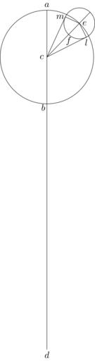 | Keywords: Coppernicus 073.svg de à ber die Kreisbewegungen der Weltkörper 73 File Kreisbewegungen-Coppernicus-0 djvu p 216 1879 w Nicolaus Copernicus File Coppernicus_073 png PD-old-100 De revolutionibus drawings LaTeX Source Code <syntaxhighlight lang latex > complile with »pdflatex« \documentclasstikz convert pdf2svg standalone \usepackage tkz-euclide \usetkzobj all \begin document \begin tikzpicture \tkzSetUpLineline width 0 4pt \pgfmathsetmacro \CA 1 8 ; \tkzDefPoint 90 \CA A \tkzDefPoint -90 \CA B \tkzDefPoint 0 0 C \tkzDefPoint -90 6 25 \CA D \tkzDefPoint 46 \CA E \coordinate F at C 67 E ; \tkzTangentfrom C E F \tkzGetPoints L M \begin pgfinterruptboundingbox \tkzInterLC C E E F \tkzGetPoints F F2 \end pgfinterruptboundingbox \tkzDrawCircle C A \tkzDrawCircle E F \draw A -- D ; \draw C -- F2 ; \draw C -- M ; \draw C -- L ; \draw E -- M ; \draw E -- L ; \draw A + 90 0 2 node a ; \draw B + -135 0 2 node b ; \draw C + 180 0 2 node c ; \draw D + -90 0 2 node d ; \draw E + 0 0 2 node e ; \draw F + -90 0 25 node f ; \draw L + -90 0 2 node l ; \draw M + 180 0 2 node m ; \end tikzpicture \end document </syntaxhighlight> |