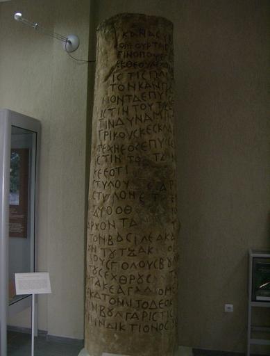 Keywords: Copy of Chatalar Inscription.jpg en Copy of Chatalar Inscription bg Копие на Чатала ския надпис в музея на г Плиска own Izvora 2010-02-20 Pliska Museum Omurtag Inscriptions in Bulgaria Khan Krum Shumen District Memorial columns in Bulgaria