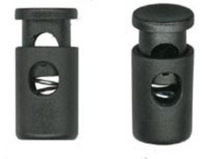 Keywords: Cord-lock.jpg en cord lock cord toggle plastic stopper barrel type cord lock Own Ratel 2008-11-11 Camping equipment Textile closures White background