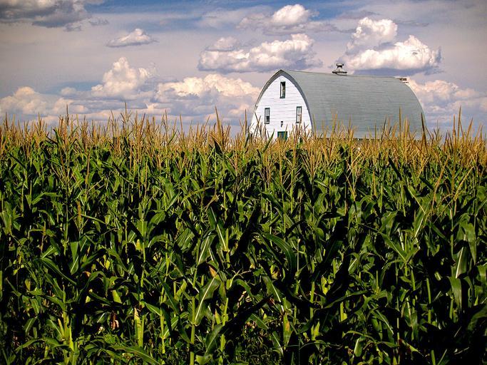 Keywords: corn field barn sky farm clouds agriculture farming crop summer harvest rural maize food growth countryside agricultural farmland grow land cornfield cultivated country
