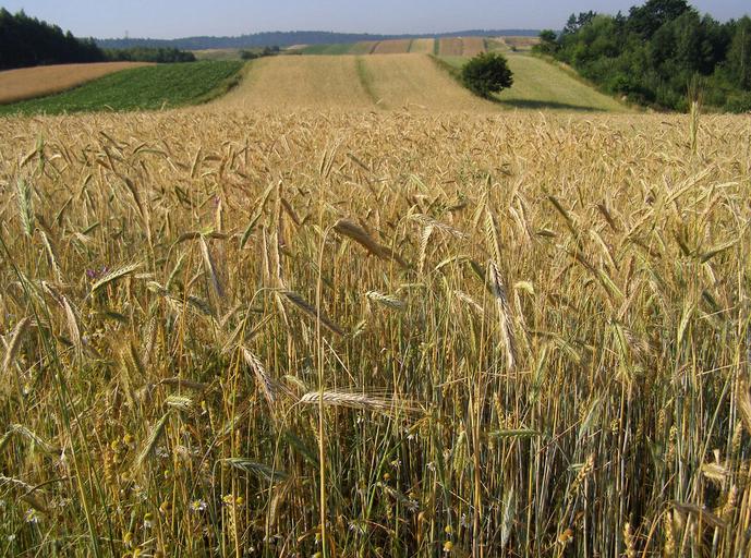 Keywords: corn rye ears field crops agriculture summer nature landscape hill malopolska poland