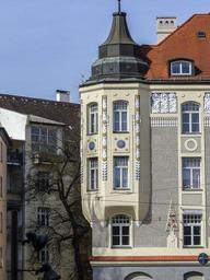 Keywords: corner gazebo europe building house facade towerlike architecture construction estate residential property housing structure town city exterior design