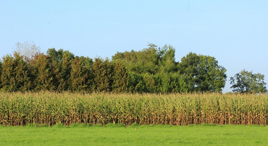 Keywords: cornfield landscape blue sky nature meadow autumn green trees