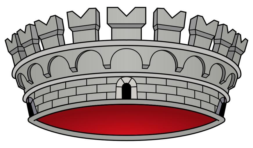 | Keywords: Corona di comune.svg corona per il titolo di comune mural crown for the Italian administrative unit called comune municipality formata da un cerchio aperto da quattro pusterle tre visibili con due cordonate a muro sui margini sostenente una cinta aperta da sedici porte nove visibili ciascuna sormontata da una merlatura a coda di rondine il tutto d ™argento e murato di nero <br> http //www governo it/Presidenza/cerimoniale/onorificenze_araldica/araldica/regio_decreto070643 html articolo 97 regio decreto 7 giugno 1943 numero 652 2007-01-18 F l a n k e r Mural Crown of Italian Comune svg SVG coats of arms of Italy SVG coat of arms elements - mural crowns 2 SVG crowns and coronets of the Kingdom of Italy 1861-1946 6 SVG coat of arms elements - crowns of Italy Coats of arms of municipalities of Italy |