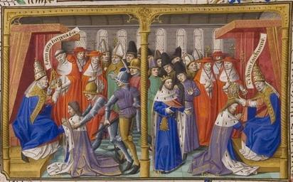 Keywords: Coronation F2.jpg century 15 en Ms 722/1196 f 392r Frederic II 1194-1250 crowned by Pope Honorius III d 1227 from Le Miroir Historial by Vincent de Beauvais http //www bibliotheque-conde fr/img/expo/tuer-le-roi/HD/1 MS0722_Miroir 20historial jpg PD-old-100 Uploaded with UploadWizard Miroir historial de Vincent de Beauvais - Musée Condé Ms722 Frederick II Holy Roman Emperor Honorius III Medieval miniatures of popes Ermine clothing in art Coronations of Holy Roman Emperors |