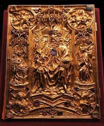 | Keywords: Coronation Gospel front.jpg Buchdeckel des Krönungsevangeliar s Teil der Reichskleinodien des Heiliges Römisches Reich Heiligen Römischen Reiches HRE Book cover of the Vienna Coronation Gospels Coronation Evangeliar part of the Imperial Regalia of the Holy Roman Empire HRE ~ 1500 silver gold Size cm 34 5 5 26 Schatzkammer Wien Weltliche Schatzkammer Schatzkammer Cámara del Tesoro es Ð¡Ð¾ÐºÑ Ð¾Ð²Ð¸Ñ‰Ð½Ð¸Ñ†Ð° Вена Ð¡Ð¾ÐºÑ Ð¾Ð²Ð¸Ñ‰Ð½Ð¸Ñ†Ð° ru Imperial Treasury Vienna Imperial Treasury secular collection Vienna Austria object history exhibition history credit line accession number place of creation Aachen Germany sf 2009-10-12 / Arnoldius PD-old-100 48 12 24 12 N 16 21 56 16 E region AT-9_dim 200m cc-by-sa-3 0 Coronation Gospel Medieval book covers Treasure bindings Hans von Reutlingen Taken with Olympus E-300 |