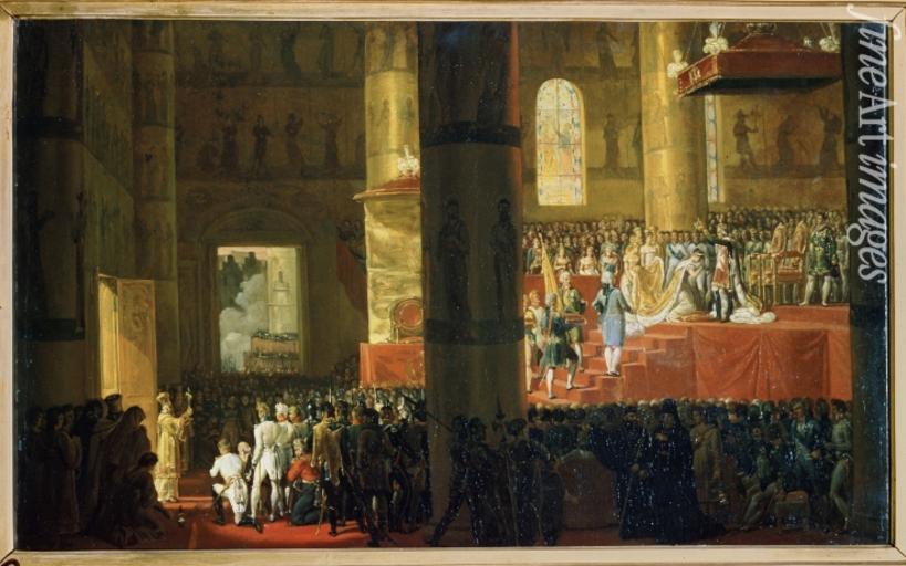 | Keywords: Coronation of Maria Fedorovna by H.Vernet (after 1826, Russian museum).jpg Ко онация импе ат ицы а ии Федо овны После 1826 1836 Холст масло 60 х 95 Russian Museum object history Поступил в 1928 из Ф узейный фонд; анее 1899 - в соб ании княгини 3 Юсуповой Санкт- Пете бу г exhibition history credit line Сп ава внизу подпись Horace Vernet а обо оте холста пастелью 20; че нилами Живопись пе еведена со ста ого холста на новый въ 1892 г Ив Сидо овымъ а под амнике синим ка андашом 3929; Р 4179; Ф - смот и скани ованный текст; к асной к аской 4179 а; штамп Г Р инв 4179 номе заче кнут Эскизы ка тин каталог 358 359 с изоб ажением ко онаций включая ка тину Ко онация импе ат ицы Александ ы Федо овны - настоящее местонахождение не установлено; анее - в соб ании 3 Юсуповой заказанные художнику иколаем I В Каталоге 1980 не дати ованы ожно п едположить что они исполнены во п емя пе вого п иезда Ве не в Россию в 1836 accession number Ж-4644 place of creation http //www tez-rus net/ViewGood36900 html Maria Feodorovna Sophie Dorothea of Württemberg Files uploaded by Shakko from various sources 19th-century paintings in the Russian Museum Coronation of Paul I of Russia Paintings by Horace Vernet PD-old |