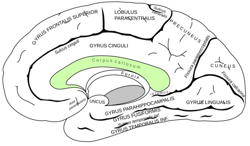 Keywords: CorpusCallosum.svg Corpus callosum on the medial surface of the right cerebral hemisphere Gray727_latin svg 2011-03-03 21 35 UTC Gray727_latin svg Gray727 svg Mysid derivative work Boskoop <span class signature-talk >talk</span> derivative work Boskoop <span class signature-talk >talk</span> Corpus callosum marked green Boskoop Gray727_latin svg PD-Gray's Anatomy plate Original upload log This image is a derivative work of the following images File Gray727_latin svg licensed with PD-Gray's Anatomy plate 2011-03-03T21 25 23Z Boskoop 1025x598 23174 Bytes <nowiki>Added 1 caption</nowiki> 2011-03-03T21 03 15Z Boskoop 1025x598 22549 Bytes <nowiki>Ooops-no frontal pole</nowiki> 2011-03-03T20 51 34Z Boskoop 1025x598 20328 Bytes <nowiki> Medial surface of left cerebral hemisphere Figure 727 from Gray's Anatomy Figure 727 from Gray's Anatomy Flipped horizontally modern textbooks usually show the frontal pole on the left side Ca</nowiki> Uploaded with derivativeFX SVG files on human brain sagittal section Gyri SVG files on cerebrum Sulcus neuroanatomy Corpus callosum SVG Gray's Anatomy plates |