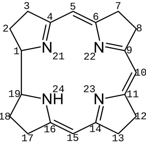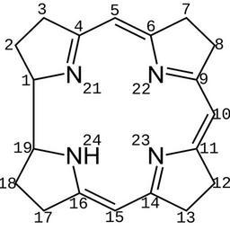 Keywords: Corrin-IUPAC.svg de Struktur von Corrin;<br />en Structure of corrin I've added ring numbering to the structure according to 1975 IUPAC standard See http //www chem qmul ac uk/iupac/misc/B12 html r1 Note that there is no position 20 - to match porphyrins positions 20-23 from very early literature were incremented to 21-24 See for example Dorothy Crowfoot Hodgkin Proceedings of the Royal Society of London Series A Mathematical and Physical Sciences Vol 288 No 1414 Nov 16 1965 pp 294-305 http //www jstor org/pss/2415001 Corrin svg 2009-11-10 02 24 UTC Corrin svg NEUROtiker derivative work Mike Serfas <span class signature-talk >talk</span> subst LOCALMONTHABBREV subst LOCALYEAR ~~~ Own work al</nowiki> Uploaded with derivativeFX Tetrapyrroles |