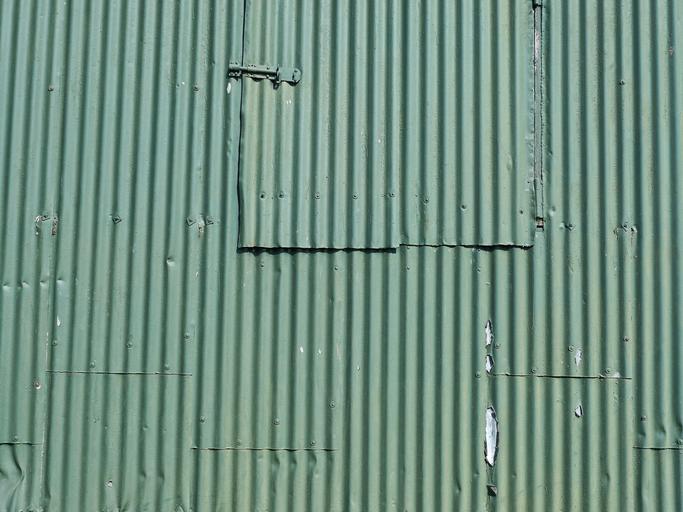 Keywords: corrugated iron green pattern industrial old roofing striped peeling decay