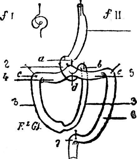 | Keywords: Corset1908 172Fig84.png Fig 84 ” SchĂ©ma du mode de suspension de i'intestin <br>I Le trajet du tube digestif reprĂ©sentĂ© par deux points d'interrogation <br>II Le tube digestif dĂ©crit 6 anses 1 anse gastrique; 2 anse duodĂ©Ânale; 3 anse ilĂ©o-colique; 4 anse costa sous-pylorique; 5 anse sous pylori-coslale ; G anse cĂ´lo-sigmoĂŻdale ” Il y a six angles de soutènement a gastro-duodĂ©nal; b duodĂ©no-jejunal; c sousÂcostal droit; d sous-pilorique ; e sous-costal gauche; f sigmoĂŻdoÂrectal F GlĂ©nard 1885 page 172 1885 Doctcur O'FOLLOWELL PD Image Corset1908_172 png PD-old Le Corset 1908 Diagrams with language-neutral legends |