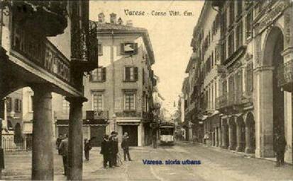 Keywords: Corso Vittorio Emanuele II all'altezza di piazza del Podestà (aperta nel 1583-87), a destra l'Arco Mera (1850). tram varese corsovittorioemanueleii corsogiacomomatteotti