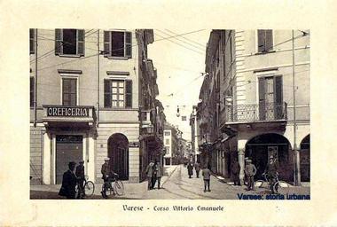 Keywords: A sinistra casa Cova (demolita per fare spazio al palazzo R.A.S., ing. Mario Loreti), al centro corso Vittorio Emanuele II (ora corso Matteotti) a destra la casa sostituita nel 1929 da palazzo Mascardi/Pini (ing. Camillo Lucchina). varese corsovittorioemanueleii piazzamontegrappa corsogiacomomatteotti piazzaporcari