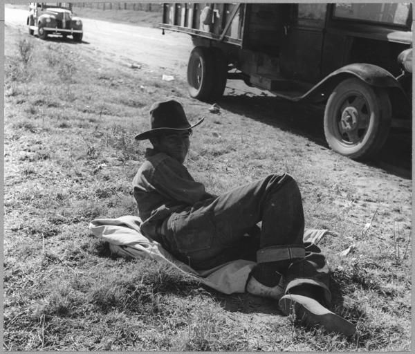 | Keywords: Cortaro Farms, Pinal County, Arizona. Lunch hour. This Mexican cotton picker, a day-worker, is haule . . . - NARA - 522202.jpg Scope and content Full caption reads as follows Cortaro Farms Pinal County Arizona Lunch hour This Mexican cotton picker a day-worker is hauled daily from Tucson to the Cortaro Farms by truck during cotton harvest General notes 522202 Local identifier 83-G-44033 Department of Agriculture Bureau of Agricultural Economics Division of Economic Information ca 1922 - ca 1953 NARA-Author Lange Dorothea 1895-1965 Photographer 1372774 <br /> Still Picture Records Section Special Media Archives Services Division NWCS-S National Archives at College Park 8601 Adelphi Road College Park MD 20740-6001 11/1940 Record group Record Group 83 Records of the Bureau of Agricultural Economics 1876 - 1959 Record group ARC 412 Photographic Prints Documenting Programs and Activities of the Bureau of Agricultural Economics and Predecessor Agencies compiled ca 1922 - ca 1947 documenting the period ca 1911 - ca 1947 Series ARC 521048 File unit File unit ARC Variant control numbers NAIL Control Number NWDNS-83-G-44033 Other versions <gallery> File Cortaro_Farms _Pinal_County _Arizona _Lunch_hour _This_Mexican_cotton_picker _a_day-worker _is_haule_ _ _ _-_NARA_-_522202 tif tif File Cortaro_Farms _Pinal_County _Arizona _Lunch_hour _This_Mexican_cotton_picker _a_day-worker _is_haule_ _ _ _-_NARA_-_522202 jpg jpg </gallery> NARA-cooperation PD-USGov Dorothea Lange Cortaro Farms Agricultural workers Cotton industry in Arizona Lunch time Men with hats 1940 in Arizona November 1940 in the United States Cotton sacks |
