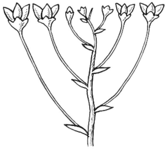 Keywords: Corymb (PSF).png Line art drawing of a corymb Dessin d'une panicule Pearson Scott Foresman Inflorescence diagrams Corymbs
