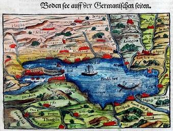 | Keywords: Cosmographia Bodensee koloriert.jpg Bodensee auff der Germanischen Seiten kolorierter Holzschnitt aus der Cosmographia von Sebastian Münster Ende 16 Jh http //www zeller de/ zeller de century 16 author PD-old Images from Auktionshaus Zeller Old maps of Lake Constance Cosmographia |
