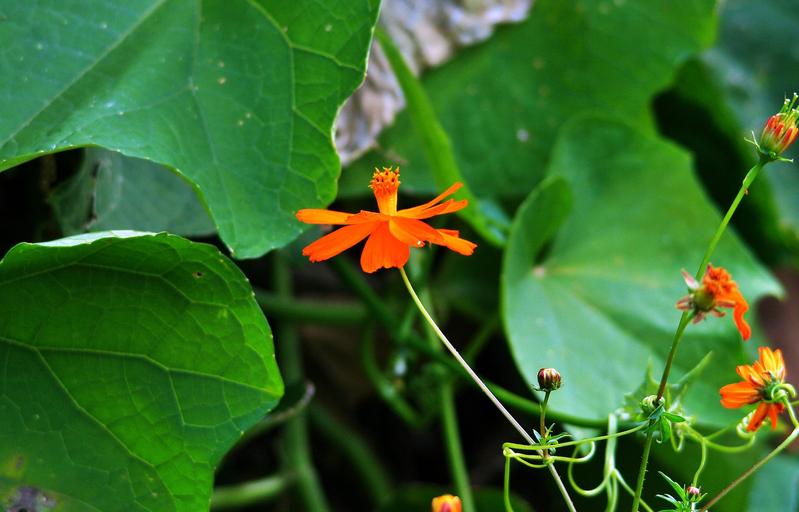 Keywords: cosmos flower flower cosmos orange dainty leaves pumpkin green garden
