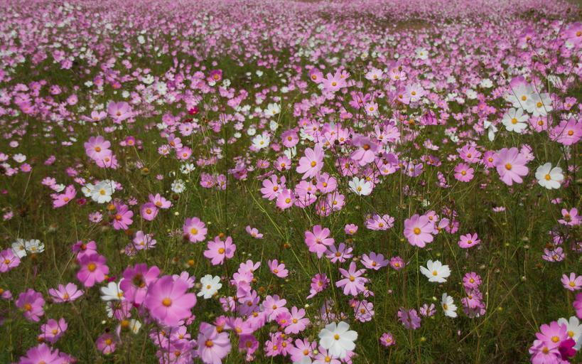 Keywords: cosmos flowers flowers field autumn seasonal blooming flora pink white colorful nature south africa wild flowers scenery