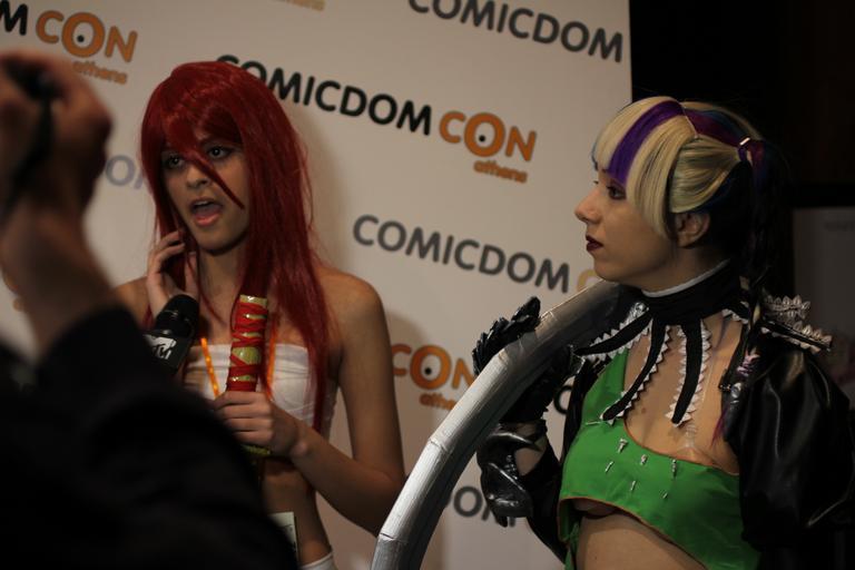 | Keywords: Cosplay at Comicdom 2012 in Athens, Greece 20.JPG en A cosplayer wearing a self-made costume representing the Tira character from Soulcalibur V grants an interview to journalists from the MTV television channel and also poses for other the photojournalists' cameras at Comicdom 2012 an annual cosplay competition held at Hellenic American Union in Kolonaki Athens Greece Photo donated to the public domain free of copyright restrictions Journalistic use For Journalistic use 2012-03-31 18 14 41 own Cogiati cc-zero consent public place Interviews with cosplayers at Comicdom 2012 Cosplay of Tira Soulcalibur Green clothing female Taken with Canon EOS 60D |