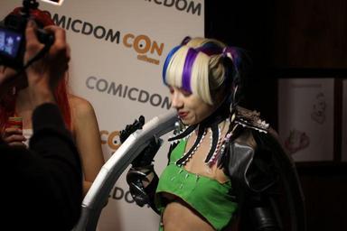 | Keywords: Cosplay at Comicdom 2012 in Athens, Greece 30.JPG en A cosplayer wearing a self-made costume representing the Tira character from Soulcalibur V grants an interview to journalists from the MTV television channel and also poses for other the photojournalists' cameras at Comicdom 2012 an annual cosplay competition held at Hellenic American Union in Kolonaki Athens Greece Photo donated to the public domain free of copyright restrictions Journalistic use For Journalistic use 2012-03-31 18 15 10 own Cogiati cc-zero consent public place Canon EF 50mm f/2 5 Compact Macro Canon EOS 60D Cosplay of Tira Soulcalibur Uploaded with UploadWizard Green clothing female Cosplay at Comicdom 2012 Cosplay in Greece Taken with Canon EOS 60D |