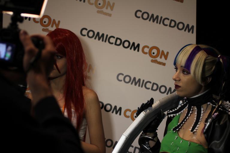 | Keywords: Cosplay at Comicdom 2012 in Athens, Greece 35.JPG en A cosplayer wearing a self-made costume representing the Tira character from Soulcalibur V grants an interview to journalists from the MTV television channel and also poses for other the photojournalists' cameras at Comicdom 2012 an annual cosplay competition held at Hellenic American Union in Kolonaki Athens Greece Photo donated to the public domain free of copyright restrictions Journalistic use For Journalistic use 2012-03-31 18 15 15 own Cogiati cc-zero consent public place Canon EF 50mm f/2 5 Compact Macro Canon EOS 60D Cosplay of Tira Soulcalibur Uploaded with UploadWizard Green clothing female Cosplay at Comicdom 2012 Cosplay in Greece Taken with Canon EOS 60D |