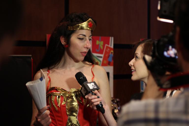 Keywords: Cosplayers at Comicdom 2012 in Athens, Greece grant interviews to the MTV television channel 22.JPG en Cosplayers at Comicdom 2012 an annual public event held at Hellenic American Union in Kolonaki Athens Greece grant interviews to journalists from the MTV television channel 2012-03-31 18 33 02 own Cogiati cc-zero consent public place Canon EF 50mm f/2 5 Compact Macro Canon EOS 60D Cosplay of Wonder Woman and her cast Interviews with cosplayers at Comicdom 2012 Taken with Canon EOS 60D Taken with Canon EF 50mm F2 5 Compact Macro |