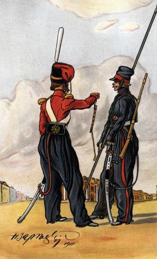Keywords: Cossacks by Nikolai Zaretsky 1911.jpg Artwork Creator Nikolai Zaretsky A Cossack of the Life Guard Cossack Regiment full dress; on the left and a w Don Cossacks Don Cossack field dress Казак w Казачий лейб-гва дии полк Казачьего лейб-гва дии полка ru па адная фо ма; слева и From the series The Russian Army in 1812 Из се ии «Русская а мия в 1812 году» 1911 watercolour india ink size cm object history The reproduction of the aquarelle was published in 1912 by the Cartographical Enterprise of Aleksey Ilyin Saint Petersburg as a part of the postcard set The Russian Army in 1812 Реп одукция аква ели была опубликована в 1912 году Ка тог афическим заведением w Ильин Алексей Афиногенович А А Ильина ru г Санкт-Пете бу г в составе набо а почтовых отк ыток «Русская а мия в 1812 году» exhibition history credit line accession number cite book Военный мунди Русская а мия в 1812 году LangSwitch set of postcards набо отк ыток осква Госуда ственный исто ический музей; Да инчи ru LangSwitch the reprint of postcards issued in 1912 еп инт отк ыток выпущенных в 1912 году See below PD-RusEmpire Russian Army in 1812 by Nikolai Zaretsky Russian cavalry of the Napoleonic period Don Cossacks Russian Cossacks in art Life Guards Cossack Regiment Reproductions of artworks uploaded by Dmitry Ivanov Zaretsky