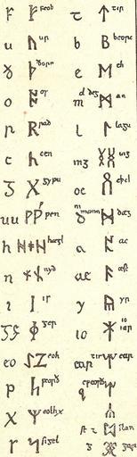Keywords: Cotton domitian.jpg en Anglo-saxon futhark from Cotton Domitian Cotton Domitian manuscript Ole Førsten 2009-02-14 PD-art Anglo-Saxon Futhorc Alphabet charts Latin alphabet charts