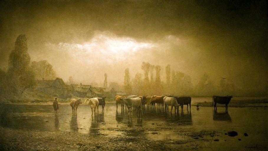 | Keywords: Countryside at Munkács (Watering).jpg Munkács vidékéről Itató en Countryside at Munkács Watering Oil on canvas cm 114 201 Budapest Hungarian National Gallery own ; Photo by Szilas at the exhibition in the Gallery of Judit Virág Budapest 1891 Creator László Mednyánszky PD-old-auto 1919 Other versions Landscapes by László Mednyánszky Paintings by László Mednyánszky in the Hungarian National Gallery 19th-century paintings in Hungary Paintings of cattle Watering in art | ||||