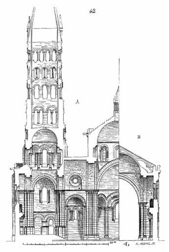 Keywords: Coupe.cathedrale.Angouleme.png Nous donnons 42 en A la coupe sur le transsept nord de cette église et en B la coupe transversale sur la nef Viollet-le-Duc Cathedral Viollet-le-Duc Cathédrale Saint-Pierre d'Angoulême Romanesque church towers in France |