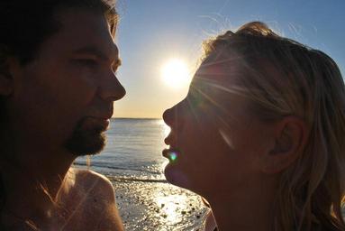 Keywords: couple sunset beach man woman love together sun