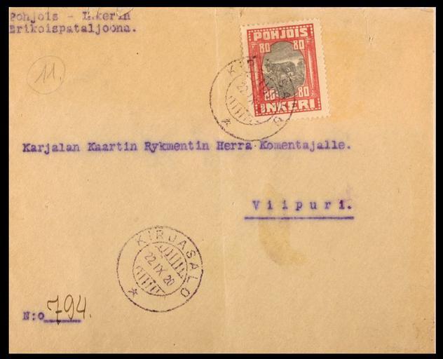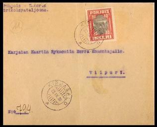 | Keywords: CoverInkeri1920.jpg ru Почтовый конве т отп авленный из Ки ьясало в Выбо г ф анки ованный почтовой ма кой Севе ной Инг ии Инге манландии вто ого выпуска 1920 Personal collection Processed by A Sdobnikov 1920 PD-old Stamps printed in Russian Empire area during Civil War Stamps of Russia 1920 Stamps of Ingermanland Stamps of Russia to be categorised by subject |