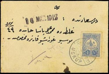 Keywords: CoverSkopje1912.jpg ru Почтовый конве т отп авленный из Скопье Ускюба 16 ма та 1912 года ф анки ованный ту ецкой ма кой 1909 года Personal collection Processed by A Sdobnikov 1912 PD-old Stamps of the Ottoman Empire 1909 stamps Postal covers of Turkey Postal covers of the Republic of Macedonia