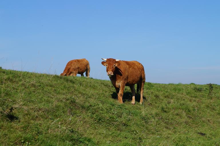 Keywords: cow animals cattle agriculture field pasture prairie peaceful horns nature