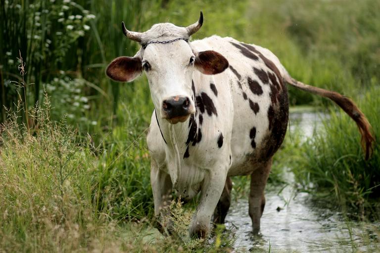 Keywords: cow bovine spotted water vegetation pet