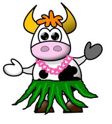 Keywords: cow cartoon skirt hula hawaiian costume animal funny dancing spots horns cute huge eyes