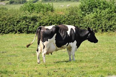 Keywords: cow moo farm cattle animal milk livestock mammal white agriculture dairy bovine black beef rural udder standing domestic nature pasture meadow female field