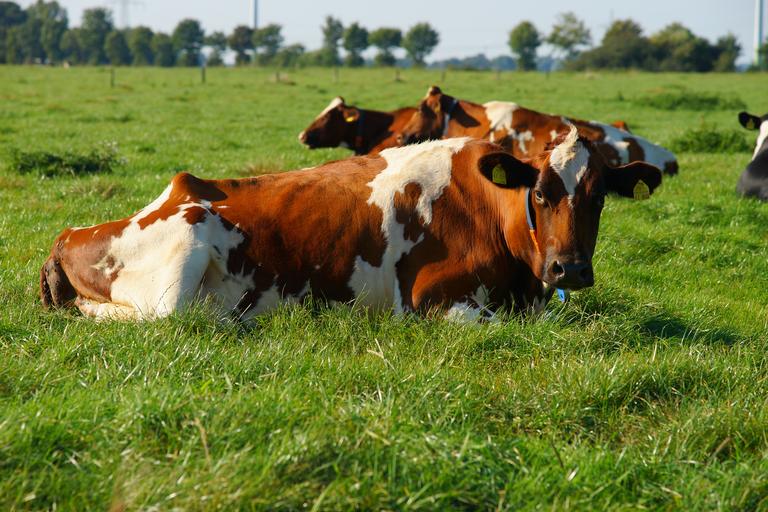 Keywords: cow pasture beef sky lying ruminate nature landscape green agriculture mammal animal red-colored perissodactyla creature