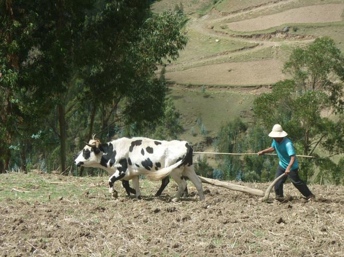 Keywords: cows farm livestock field mount landscape nature mammal animal toro animals veal green stable food horns black and white cows love animals calf animal nature animal husbandry peru