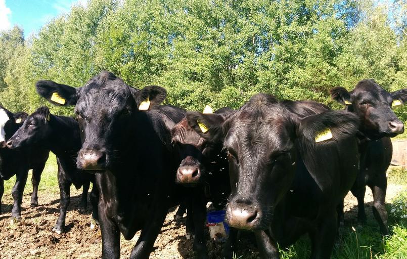 Keywords: cows pasture summer sweden black tree green animals flock earmarked